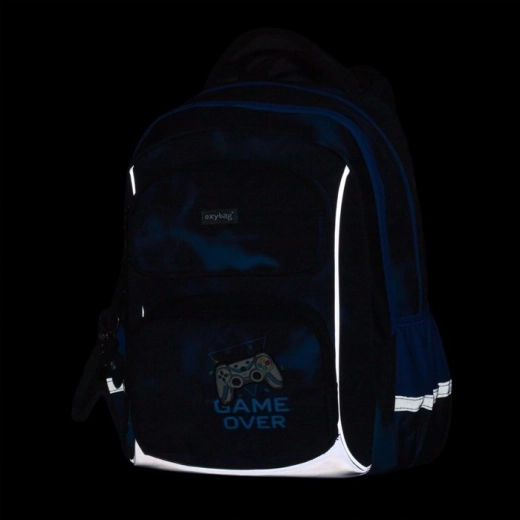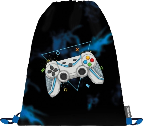 Design s motivem Gamer zahrnuje batoh, jednopatrový penál a vak na cvičky ve sladěném provedení s reflexními prvky pro lepší viditelnost.