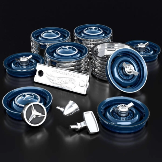 Stavebnice obsahuje také kovové komponenty pro personalizaci – můžete měnit ráfky, zrcátka či přidat originální logo. V balení najdete navíc malý kovový model 1:64, který se skvěle vyjímá ve vitríně. Elegantní dárkové balení potěší každého nadšence do konstrukčních projektů.