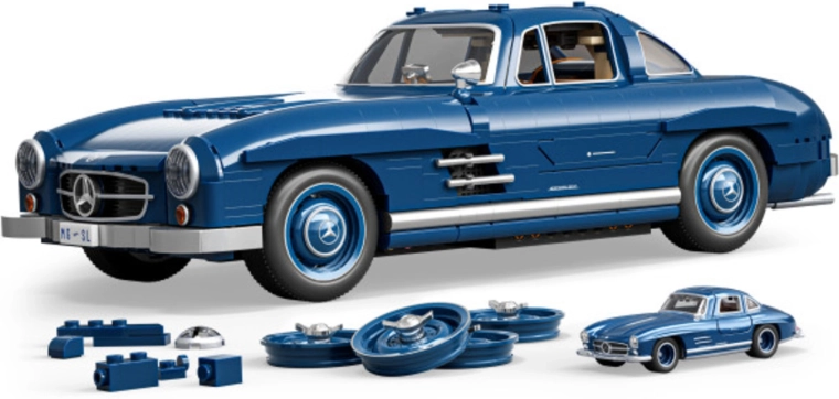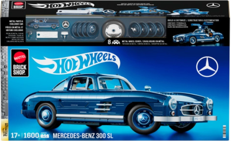 Postavte si ikonický vůz Mercedes‑Benz 300 SL v měřítku 1:12 z 1600 dílků série HOT WHEELS Brick Shop. Model zaujme modrou karoserií, množstvím pohyblivých prvků (otevíratelné dveře, kapota, kufr, řízení kol) a kovovými díly pro úpravy vzhledu (ráfky, zrcátka, logo). Součástí je také sběratelský mini model 1:64 a elegantní balení ideální jako dárek.