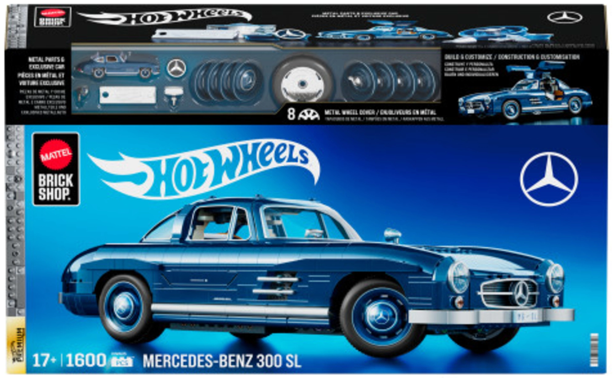 Užijte si prémiový stavební zážitek s modelem Mercedes‑Benz 300 SL z edice HOT WHEELS Brick Shop. Díky 1600 dílkům a důrazu na detaily vznikne působivá replika s autentickou modrou karoserií, která nadchne fanoušky rychlých aut i sběratele. Otevíratelné části a funkční řízení kol přinášejí realistickou zábavu a atraktivní vystavení.