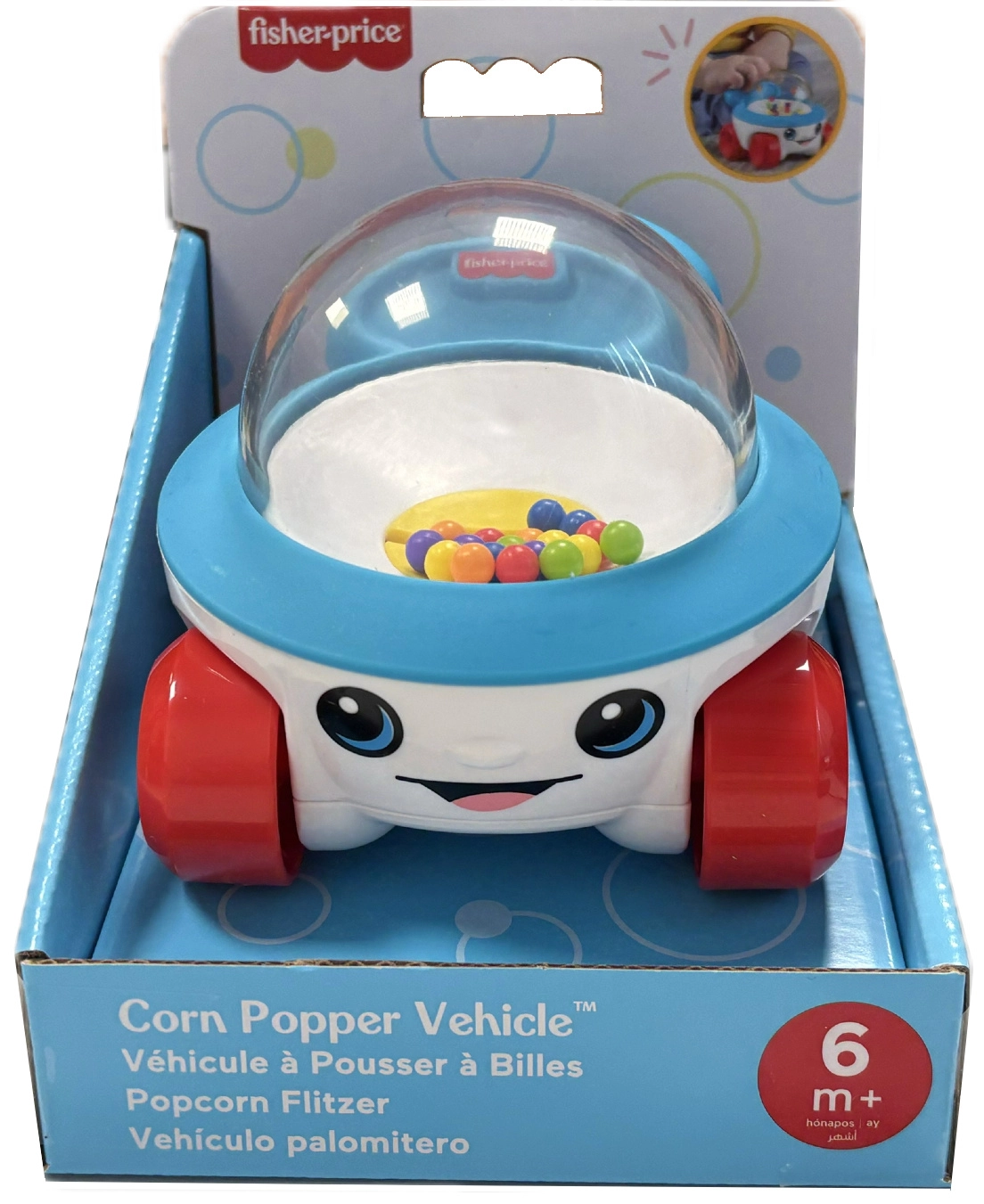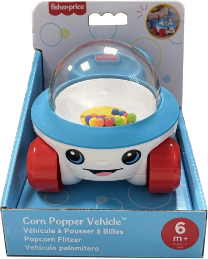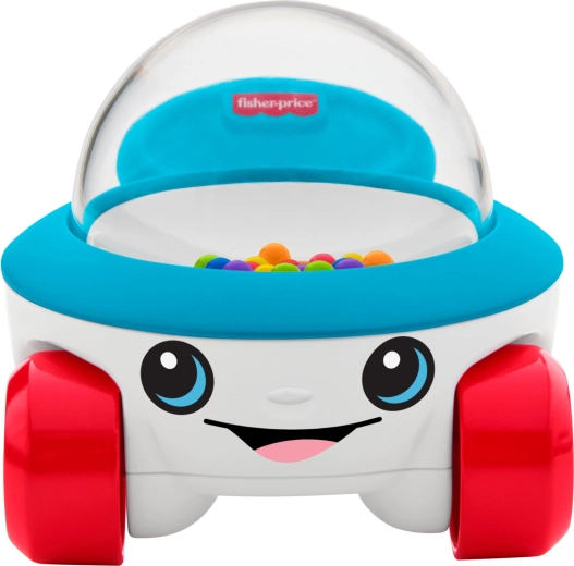 Autíčko s usměvavým obličejem a průhlednou kopulí plnou barevných kuliček nadchne každé miminko. Při pohlčení do hry dítě autíčko popostrkuje, kuličky uvnitř skáčou a chrastí, což přirozeně motivuje k plazení a lezení. Kompaktní tvar a robustní kolečka zajišťují hladkou jízdu po koberci i podlaze.