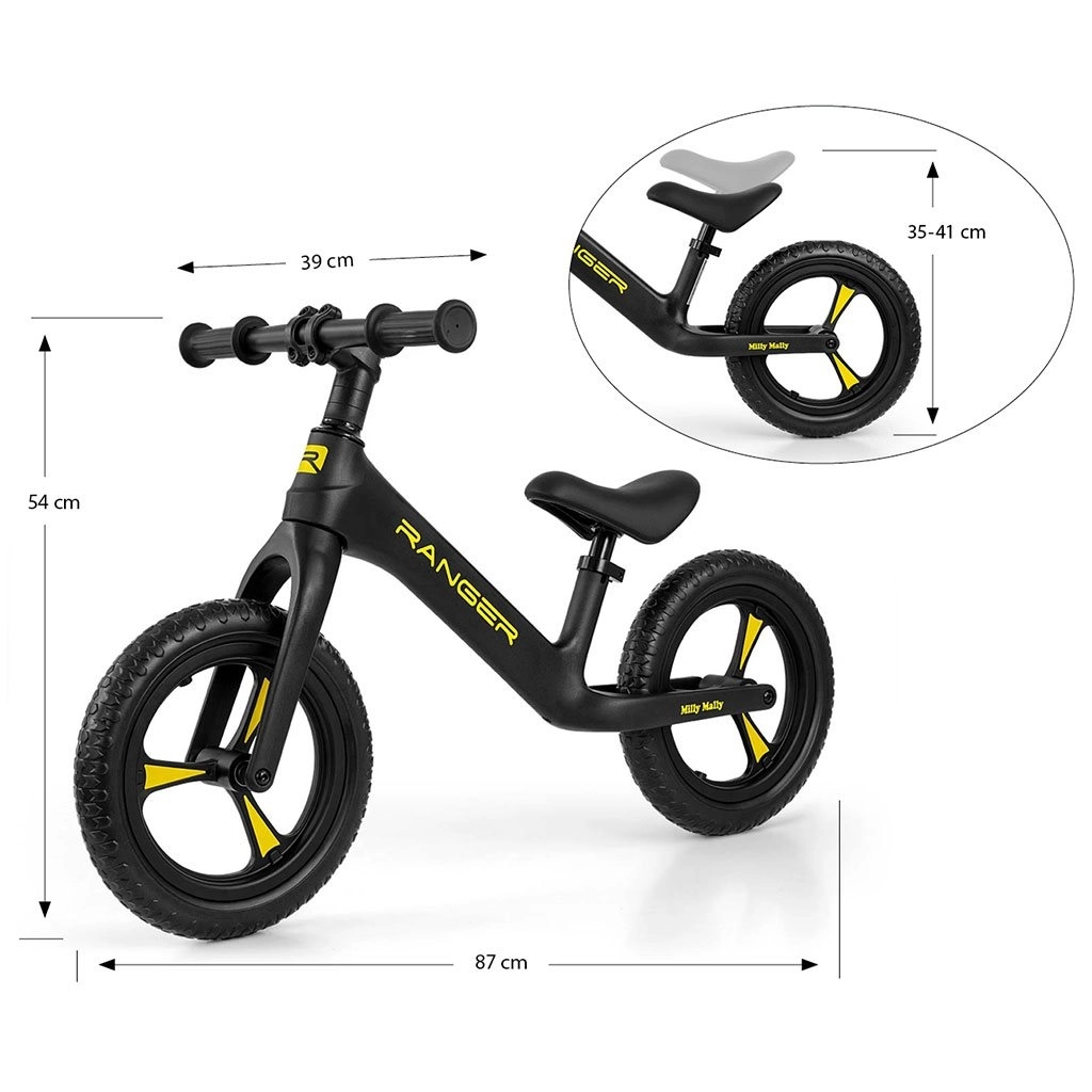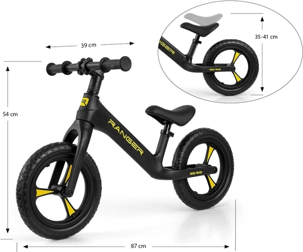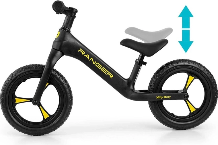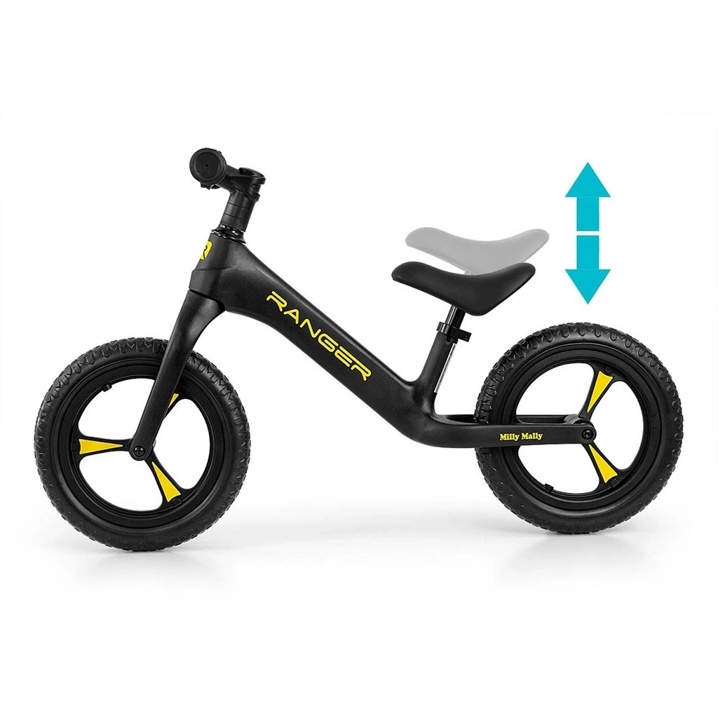 Odrážedlo MILLY MALLY Ranger je ideální volbou pro děti od 2 let, které se učí držet rovnováhu a připravují se na první kolo s pedály. Kompozitní rám je pevný a mimořádně lehký, takže se dětem i rodičům snadno přenáší. Ergonomicky tvarované, měkké sedlo roste spolu s dítětem díky jednoduchému nastavení výšky.