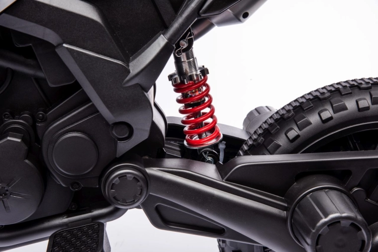 Velká EVA kola s hrubším vzorkem, zadní odpružení a přední LED světla zvyšují komfort i bezpečnost při jízdě. Multimediální panel s MP3, USB, Bluetooth a vestavěnými melodiemi potěší každé dítě oblíbenou hudbou. Startování je pohodlné tlačítkem, měkké sedlo z ekokůže dodá komfort i při delší jízdě.