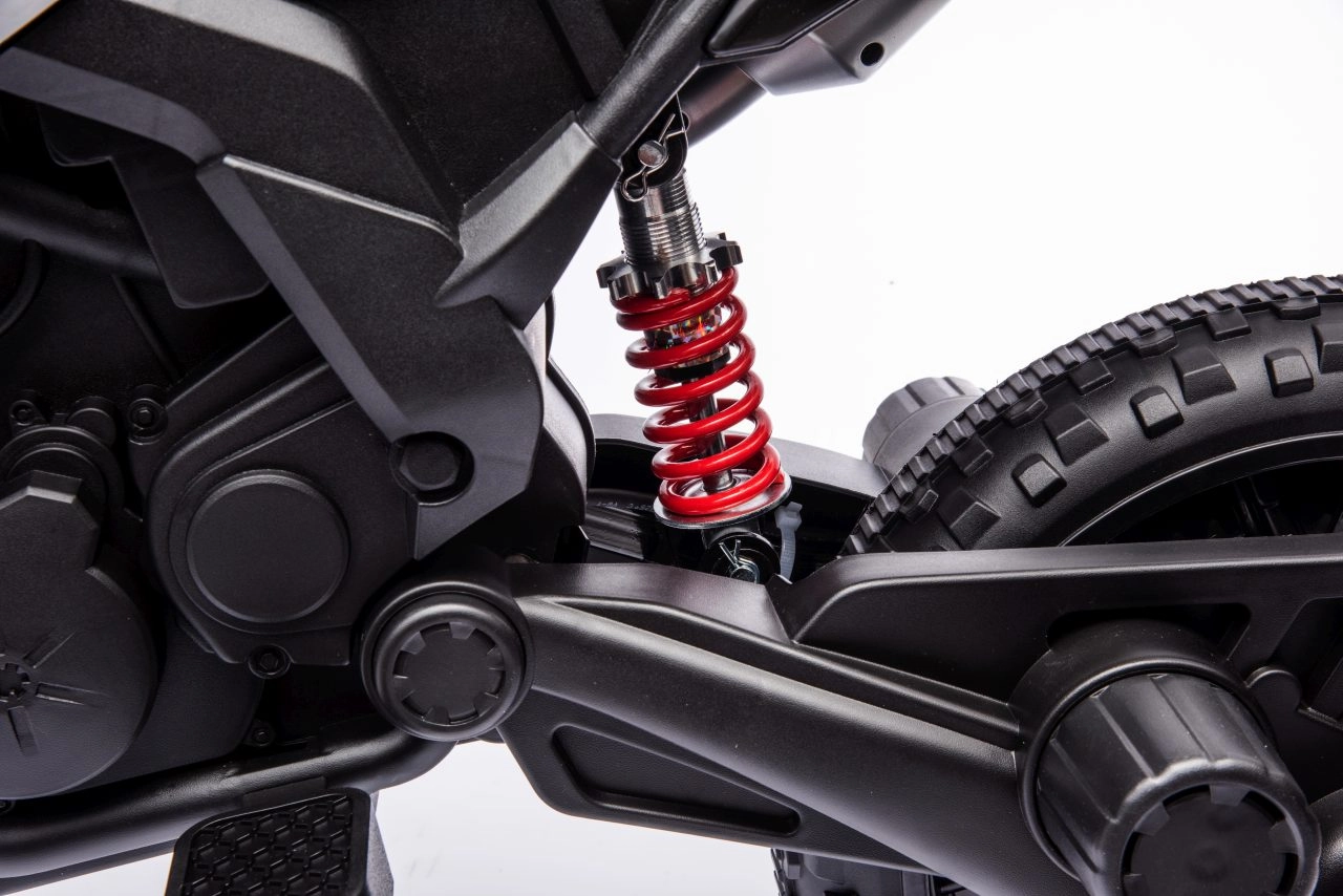 Stylová dětská motorka APRIA RX na baterii 12 V nabízí silný pohon 2×35 W, tichá EVA kola, boční stabilizační kolečka a přední LED světla. Pro zábavnou jízdu nechybí audio panel s MP3/USB/Bluetooth a pohodlné sedlo z ekokůže. Ideální pro malé jezdce, kteří chtějí bezpečně trénovat rovnováhu a užít si off-road vzhled.
