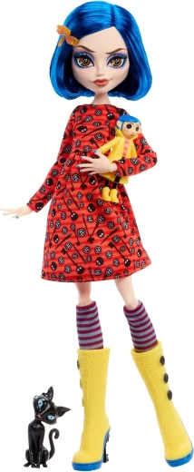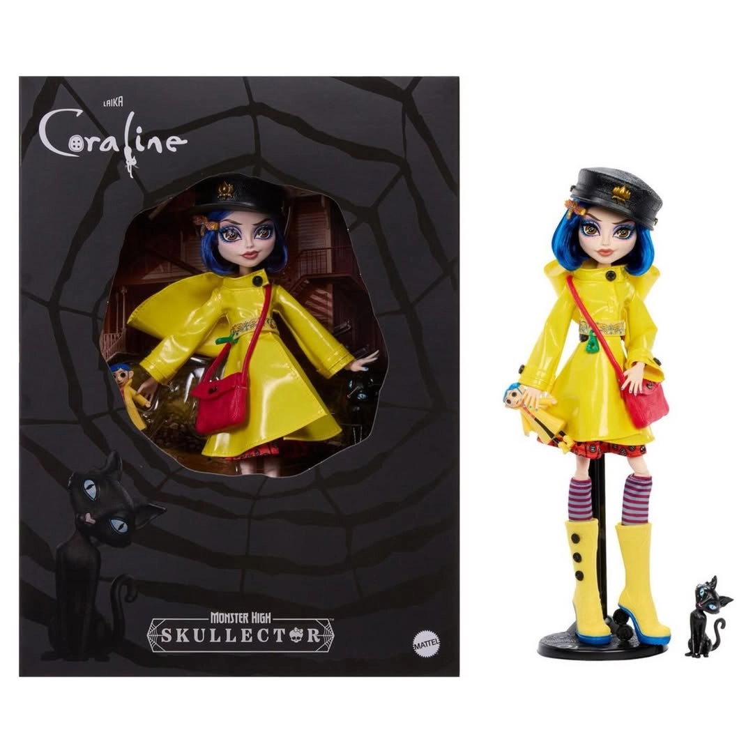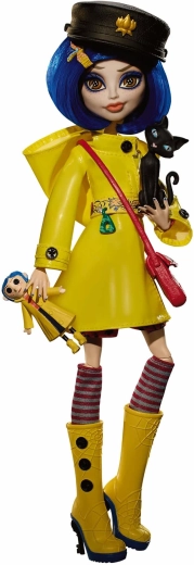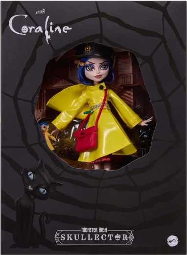 Objevte kouzlo temné fantazie s panenkou CORALINE v unikátní interpretaci Monster High Skullector. Precizně zpracovaný žlutý pláštík s knoflíky, pruhované ponožky a žluté vysoké boty s pavoučími detaily věrně odkazují na filmovou předlohu. Součástí je také mini panenka Coraline s knoflíkovýma očima, stylová kabelka, klobouk a figurka černého kocoura.