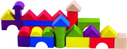 Barevná dřevěná stavebnice pro děti obsahující 100 kostek různého tvaru, rozvíjí představivost a jemnou motoriku.