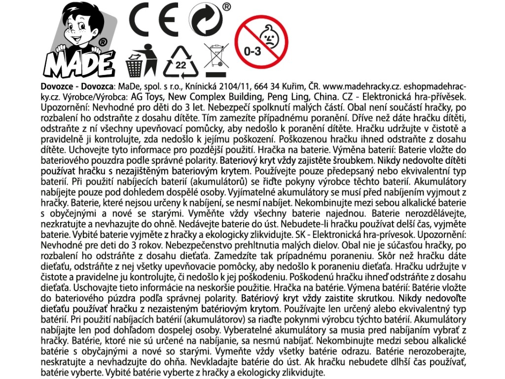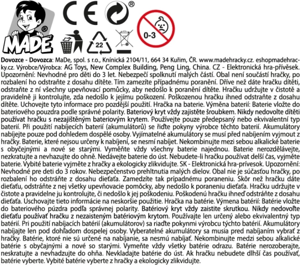 Hra je připravena k okamžitému použití díky dvěma bateriím LR44, které jsou součástí balení. Skvělá volba pro domácí i venkovní hraní, cestování, čekárny či dětské koutky.