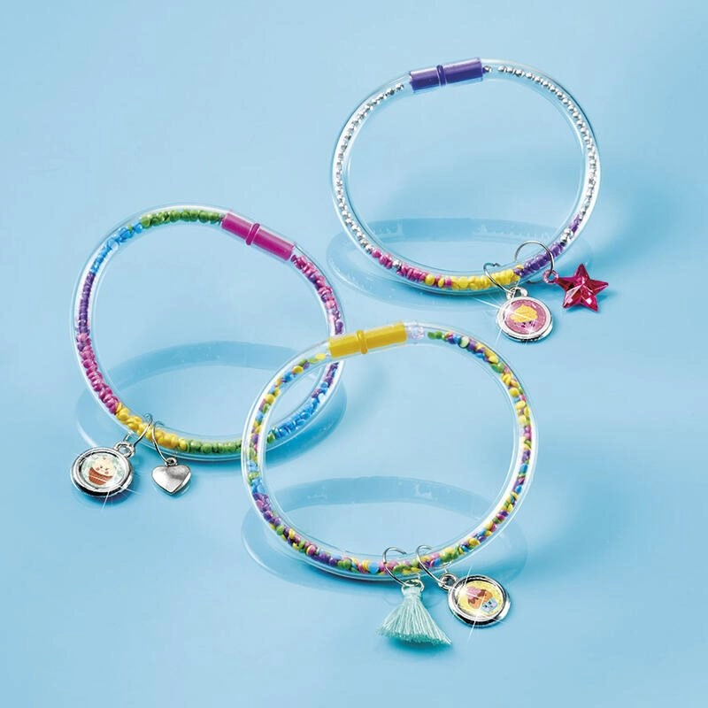 Vytvářejte originální náramky plné třpytu a fantazie. Tato kreativní sada přináší bohatý výběr komponentů – od kamínků a přívěsků až po trubkové náramky a uzavírací díly – abyste mohli snadno sestavit osobité šperky přesně podle svého stylu.