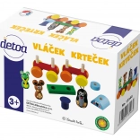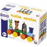 Oblíbený dřevěný vláček z pohádkového světa KRTEČKA je ideální pro rozvoj fantazie, jemné motoriky a tvořivosti. Děti mohou měnit pořadí figurek a zkoušet různé kombinace, což zaručí spoustu zábavy při každé hře. Mašinka se dvěma obličeji – veselým a udiveným – dodává vláčku hravý výraz a příběhové možnosti.