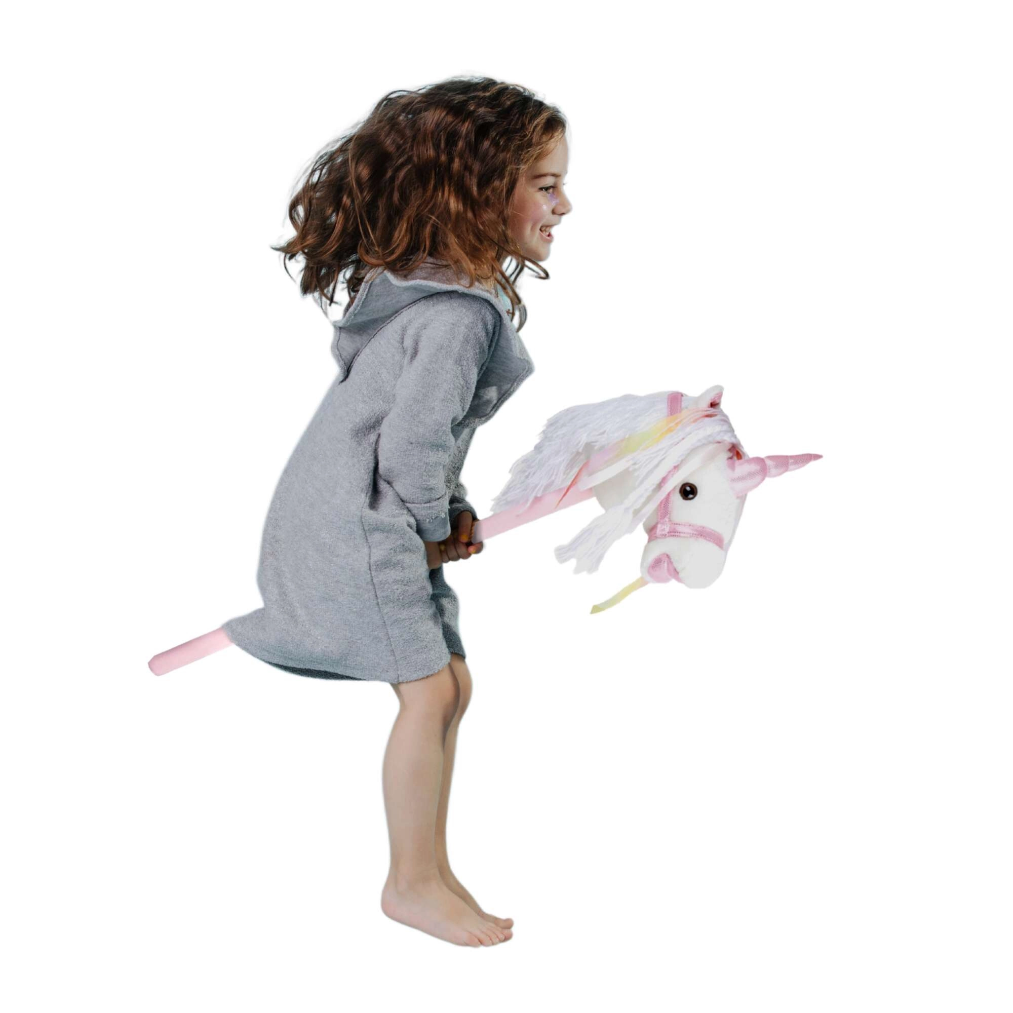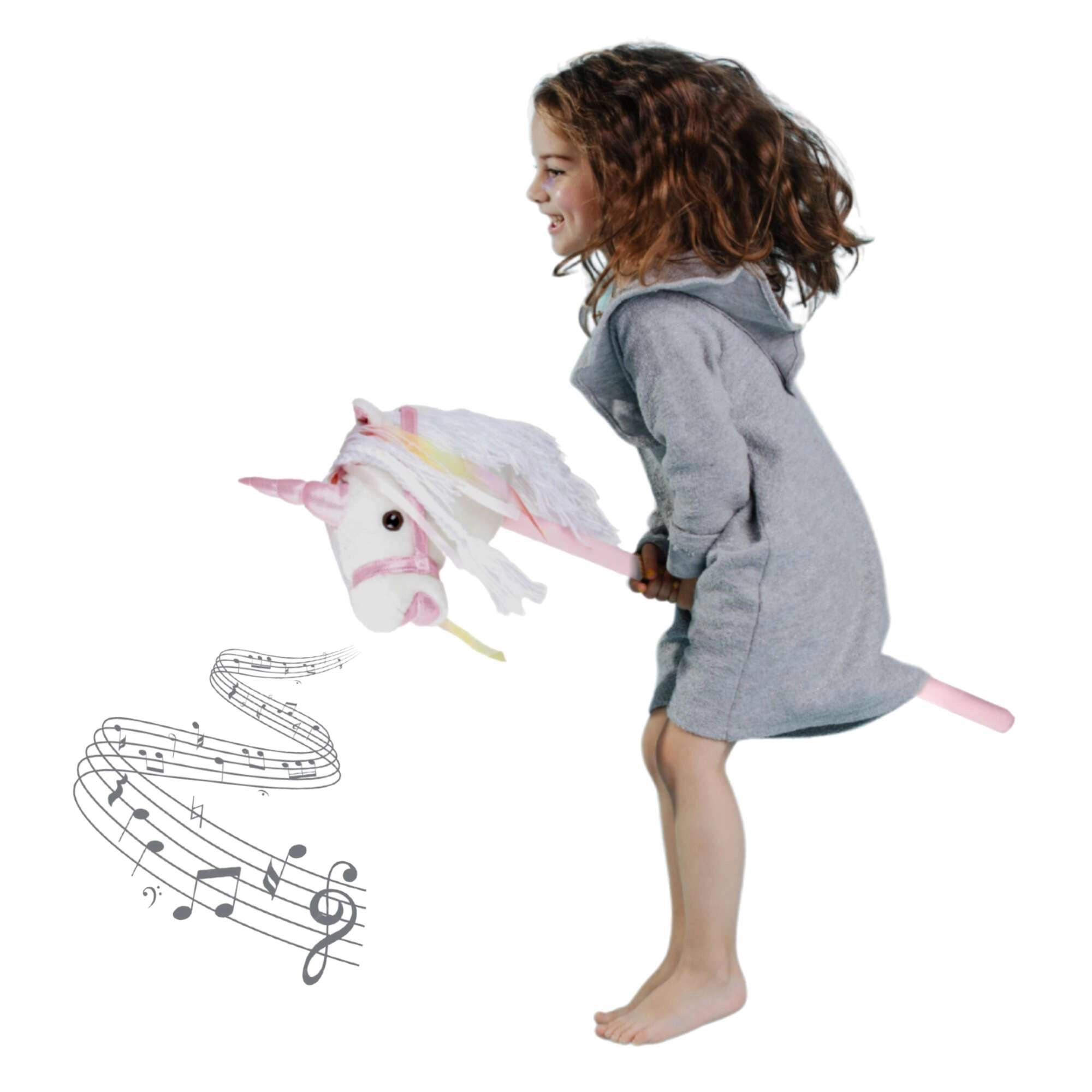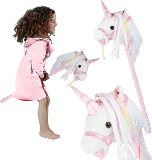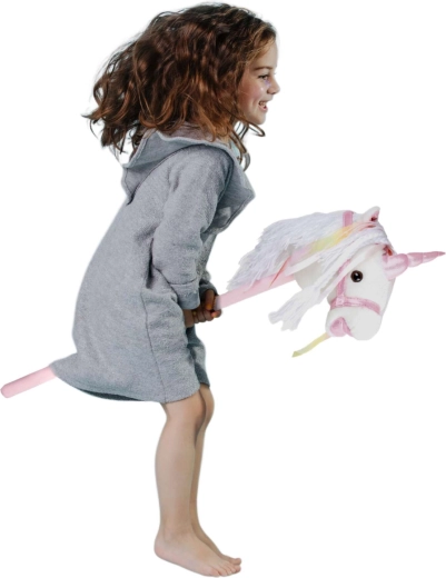 Tento jednorožec na tyči podporuje pohyb, fantazii a role-play. Jemný plyš je příjemný na dotek, ozdobná hříva a stužky dodají každé jízdě kouzelnou atmosféru. Po stisknutí tlačítka v uchu se ozvou realistické zvuky klusu a ržání, které dětem ještě více zpřítomní hru na ježdění.