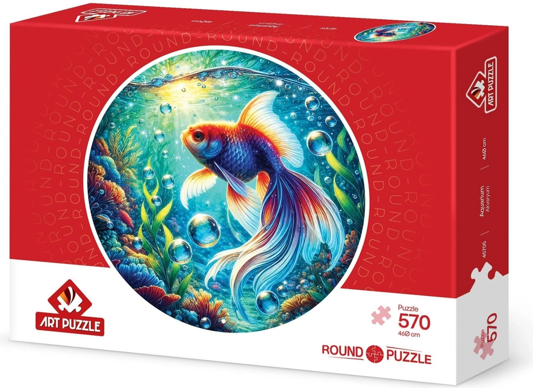 Toto kulaté puzzle s motivem akvária je skvělou volbou pro milovníky skládaček, kteří hledají něco netradičního. 570 kvalitních dílků vytváří detailní a barevný obraz plný ryb a podmořských prvků, který potěší začátečníky i zkušené skladače.