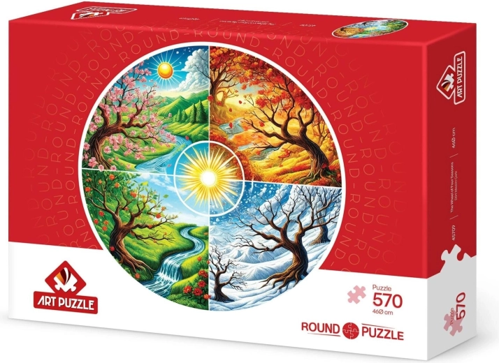 Užijte si jedinečný zážitek ze skládání s kulatým puzzlem, které spojuje všechny čtyři roční období do jednoho harmonického obrazu. Díky 570 precizně vyřezaným dílkům je skládání plynulé, zábavné a vhodné pro mírně pokročilé i zapálené milovníky puzzle.