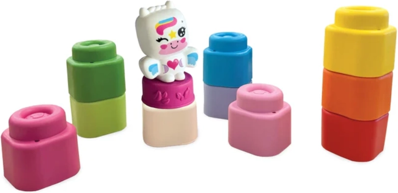 Objevte první stavebnici pro nejmenší: měkké a bezpečné kostky SOFT CLEMMY v sadě 10 ks doplněné o roztomilou figurku jednorožce. Kostky v výrazných veselých barvách se snadno uchopují, podporují smyslový a motorický rozvoj, rozvíjejí jemnou motoriku, koordinaci oko–ruka i kreativitu. Vyrobeno z měkké, netoxické gumy, snadno omyvatelné a příjemně vonící.