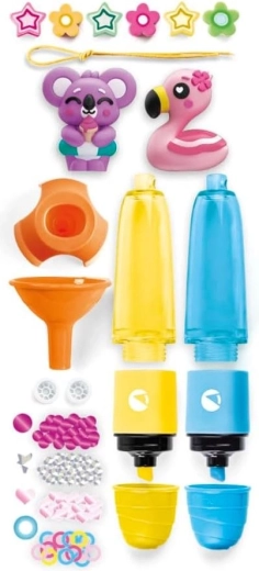 - Komponenty pro sestavení 2 zvýrazňovačů, různé barvy inkoustu, dekorace, postavičky, nástroje pro kompletaci a zdobení