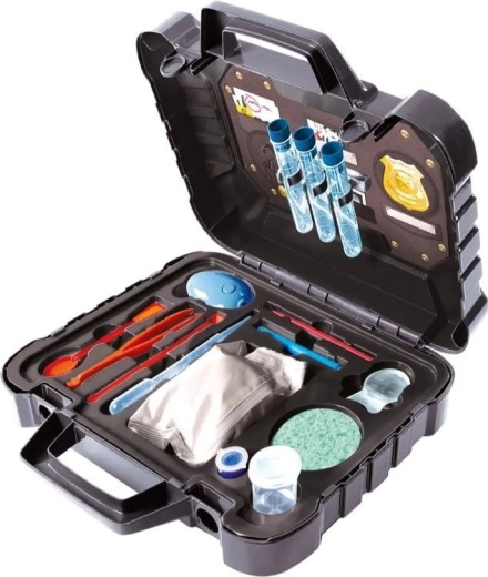 S touto sadou se děti snadno vžijí do role opravdových detektivů. Kufřík přináší akční herní zážitky se zvukovými a hudebními efekty, které ještě více vtáhnou do hry. Najdete v něm vše potřebné pro první vyšetřování – například lupu, poznámkový blok a další praktické pomůcky.