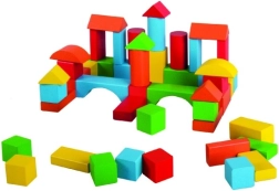 Barevná dřevěná stavebnice obsahuje 50 kvalitně opracovaných kostek různých tvarů pro malé stavitele. Podporuje jemnou motoriku, kreativitu a prostorovou představivost. Vyrobeno z bezpečného dřeva, splňuje normy EU a je vhodné pro děti od 2 let.