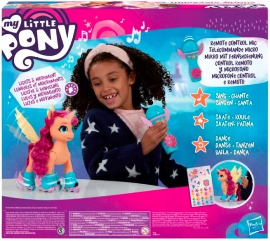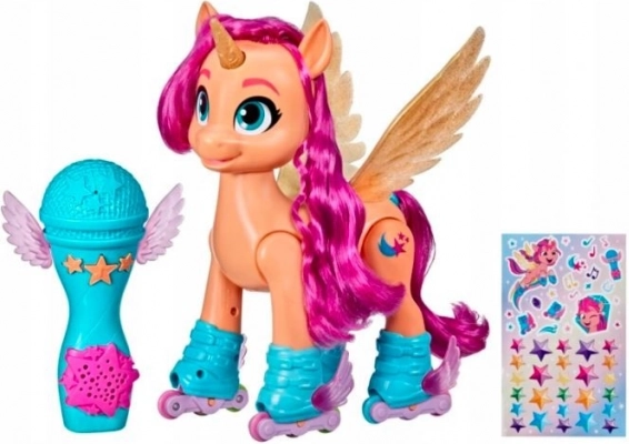 Objevte kouzelný svět s figurkou My Little Pony Sunny Starscout! Tato interaktivní zpívající poníková hrdinka na bruslích přináší dětem od 5 let hodiny kreativní zábavy. Díky zpívající funkci a pohybu na kolečkách rozvíjí představivost a přináší do hry spoustu radosti.