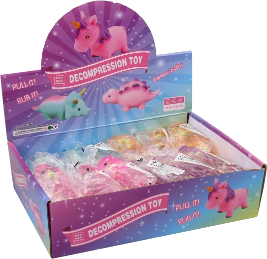 Uvolněte napětí s roztomilým antistresovým dinosaurem, který můžete mačkat, natahovat a hníst. Průhledné tělo je vyplněné třpytkami, jež se při stisknutí pohybují a vytvářejí okouzlující efekt. Příjemný měkký materiál zajišťuje relaxační hru i smyslové potěšení. Prodává se po 1 kuse, různé barvy a motivy.