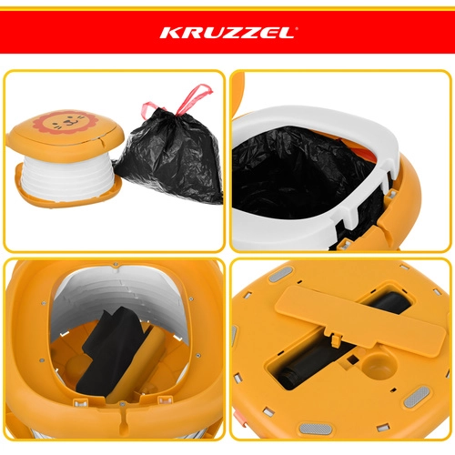 - cestovní nočník KRUZZEL Lev, jednorázové hygienické sáčky, vícejazyčný návod, kartonové balení
