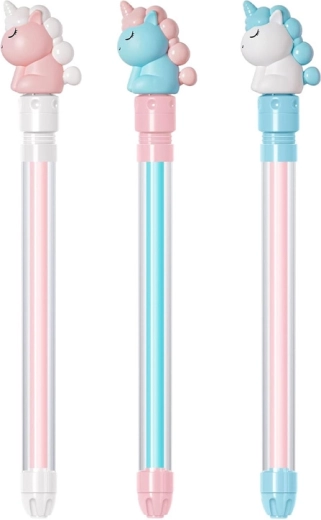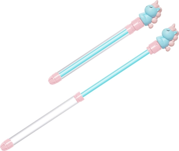 Vodní pistole s jednorožcem je ideální hračka pro horké dny. Průhledné tělo ukazuje hladinu vody a pumpovací mechanismus funguje jako klasická stříkačka – stačí ponořit špičku do vody, zatáhnout za rukojeť a poté stlačit pro silný proud. Děti tak získají jednoduchou a zábavnou pomůcku pro vodní souboje u bazénu, na zahradě nebo u jezera.
