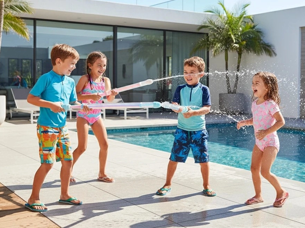 Mechanismus funguje jako vodní stříkačka: ponořte špičku do vody, natáhněte a stiskněte. Čím energičtější pohyb, tím delší a silnější proud pro maximální zábavu.