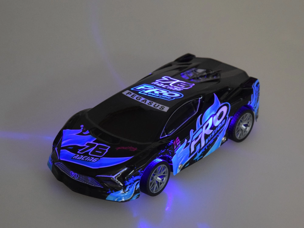 Zábavné sportovní RC auto v měřítku 1:18 potěší malé i velké fanoušky rychlé jízdy. Má lehkou a odolnou konstrukci, gumová kola pro dobrou přilnavost a během jízdy efektně podsvícenou karoserii. Ovládání je jednoduché díky intuitivnímu dálkovému ovladači. Součástí je nabíjecí akumulátor 3,7 V a USB kabel.