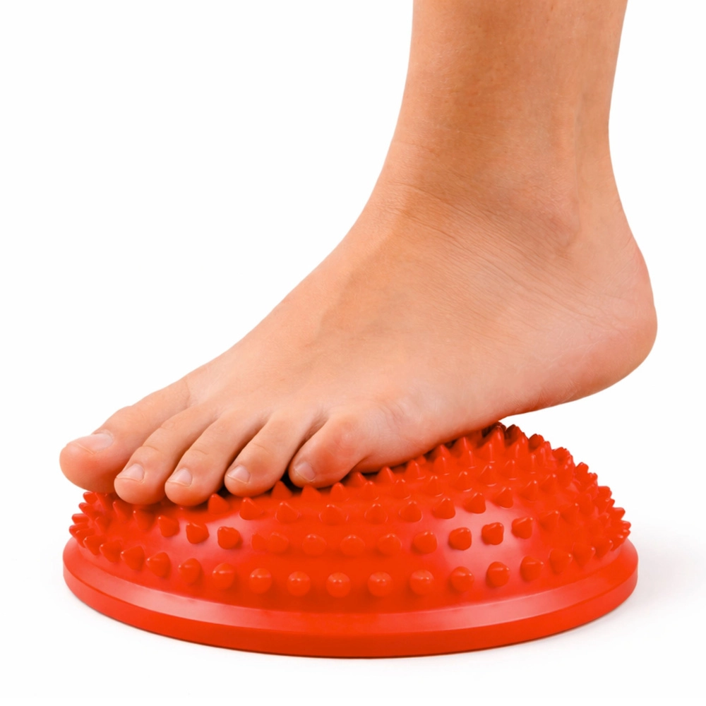 Senzorická polokoule je praktická pomůcka pro děti i dospělé. Polokulovitý tvar vytváří mírně nestabilní podklad pro trénink rovnováhy, koordinace a posílení středu těla, zatímco husté výstupky poskytují jemnou akupresurní masáž chodidel. Pravidelné používání může pomoci při podpoře klenby chodidla a uvolnění napětí.