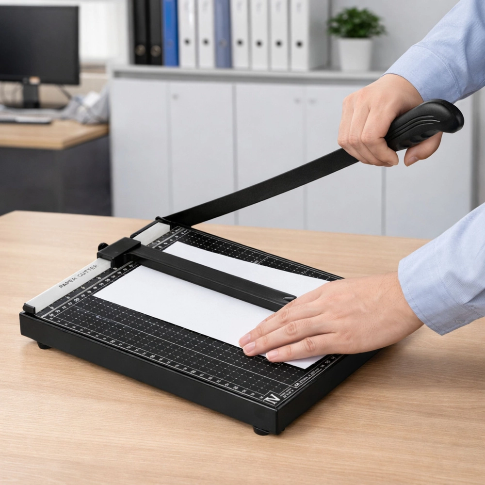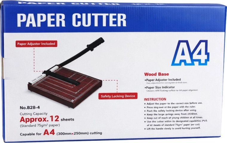 Tato gilotina na papír A4 je ideální do kanceláře, školy, tiskárny i domácí dílny. Stabilní základna s měřicími liniemi a značkami formátů pomáhá přesně nastavit dokument před řezem. Kovové řezné rameno s dlouhou pákou usnadňuje čistý a rovný řez bez vynaložení velké síly.