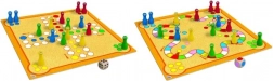 Nová, vylepšená verze klasické rodinné hry potěší malé i velké. Obsahuje velký oboustranný herní plán, 16 barevných dřevěných figurek s obličejem (6 cm) a 2 velké hrací kostky. Díky pevné dřevěné konstrukci a splnění požadavků EU na bezpečnost hraček je ideální pro děti od 3 let.