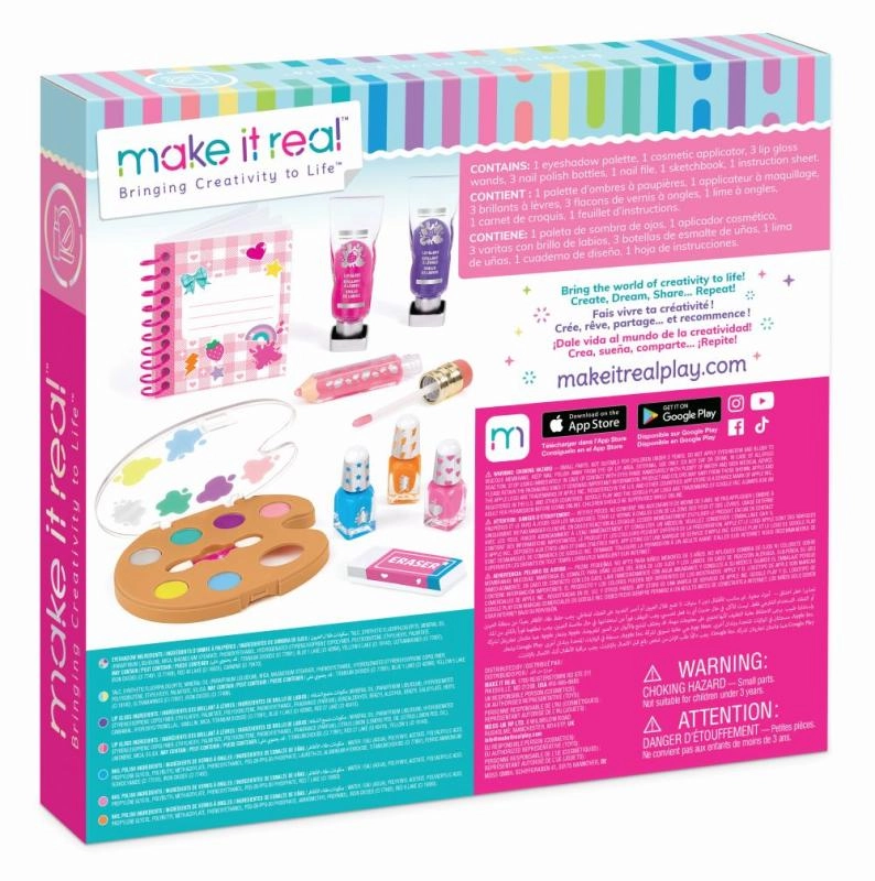 Objevte hravou kosmetickou sadu pro malé umělce: paletku očních stínů ve tvaru malířské palety, lesky na rty jako „tuby s barvou“, tři laky na nehty a skicář pro návrh looků. Ideální pro děti od 8 let – podporuje kreativitu, sebevyjádření a zábavné učení líčení s bezpečně testovanými produkty.
