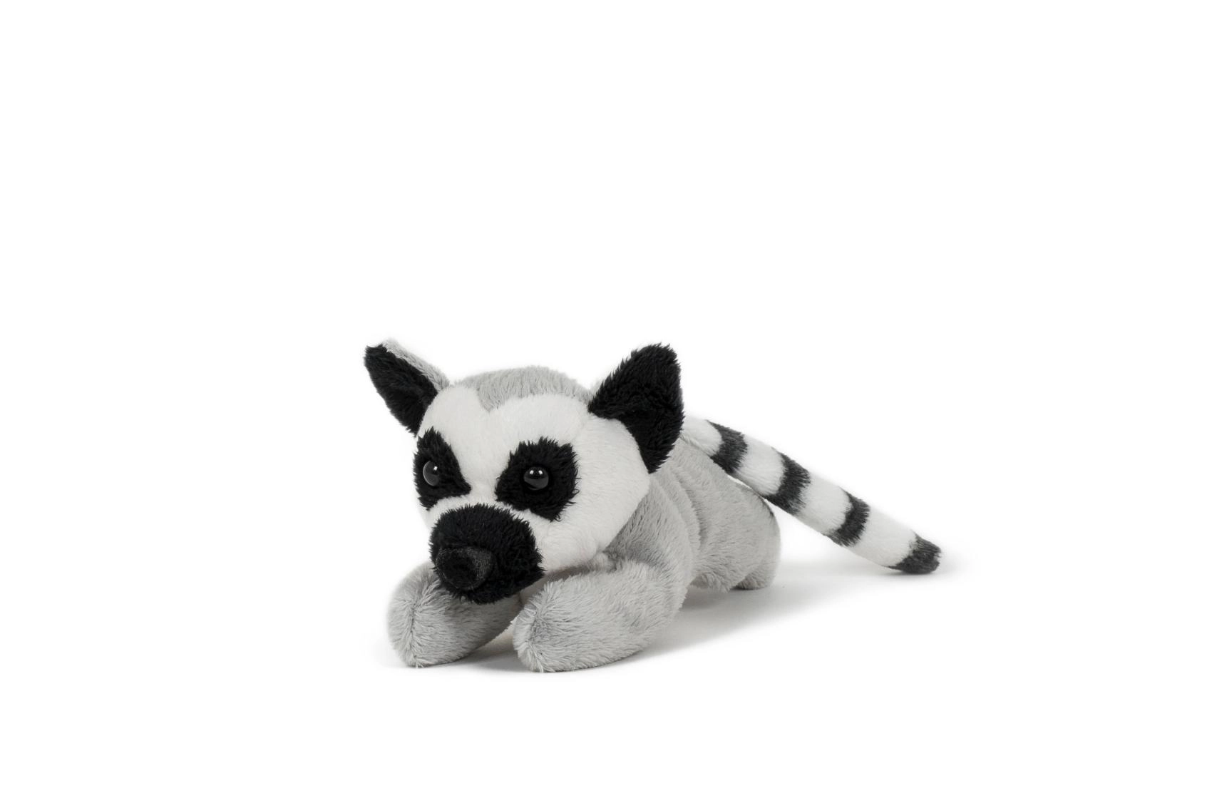 Roztomilý plyšový lemur kata v ležící pozici zaujme svým typickým černo‑bílým zbarvením a dlouhým pruhovaným ocasem. Díky realistickému provedení, měkkému a hebkému materiálu a přátelskému výrazu se rychle stane oblíbeným společníkem na mazlení i hraní doma i na cestách.