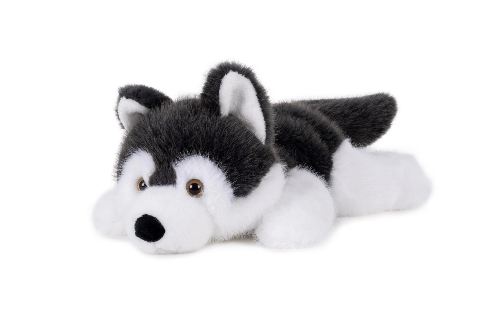 Přineste domů měkoučkého kamaráda – plyšového huskyho v ležící poloze. Jeho typické černo-bílé zbarvení, milý výraz a jemný povrch potěší malé i větší děti. Díky větší délce 30 cm se skvěle hodí na mazlení a jako uklidňující společník před spaním.