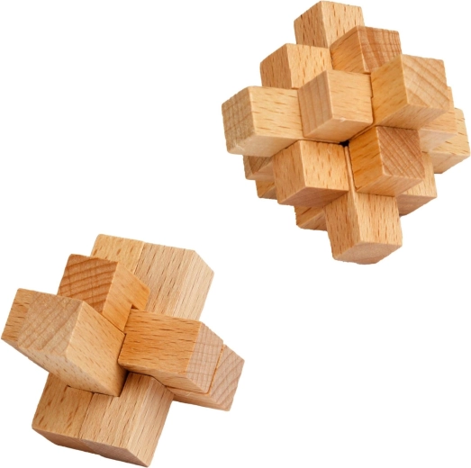 Tato sada dřevěných hlavolamů přináší chytrou zábavu v kompaktním provedení. Úkolem je rozložit jednotlivé dílky a poté je znovu správně složit do 3D tvaru. Přírodní materiál je příjemný na dotek, vydrží časté používání a působí elegantně na pracovním stole i doma.