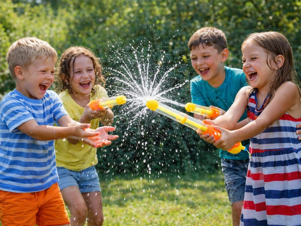 Perfektní pro vodní bitvy na zahradě, u jezera nebo během prázdnin. Děti při hře běhají, kryjí se a míří, čímž přirozeně rozvíjejí koordinační schopnosti, postřeh a fyzickou kondici.