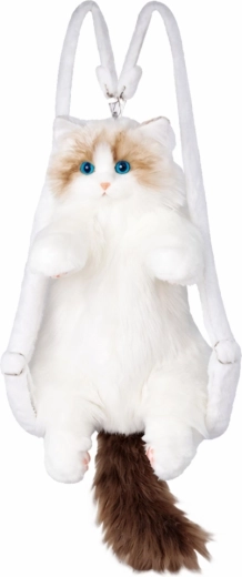 Tento plyšový batoh ve tvaru kočky potěší děti i milovníky zvířat. Měkoučký materiál a nadýchané kožíškové provedení z něj dělají skvělého parťáka na cesty i do školky. Realistická tvářička, modré oči a huňatý ocásek dodávají batohu jedinečný vzhled.