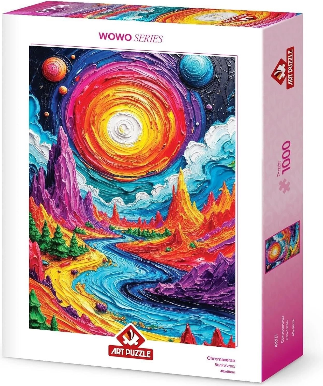 Objevte barevný svět skládání s puzzle Chromaverse o 1000 dílcích, které po složení vytvoří působivý obraz o rozměrech 48 × 68 cm. Ideální volba pro relaxaci, trénink soustředění a radost z dokonale padnoucích dílků.