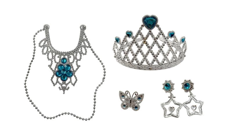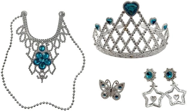 - Kompletní výbava – korunka, náhrdelník, náušnice a prsten.
