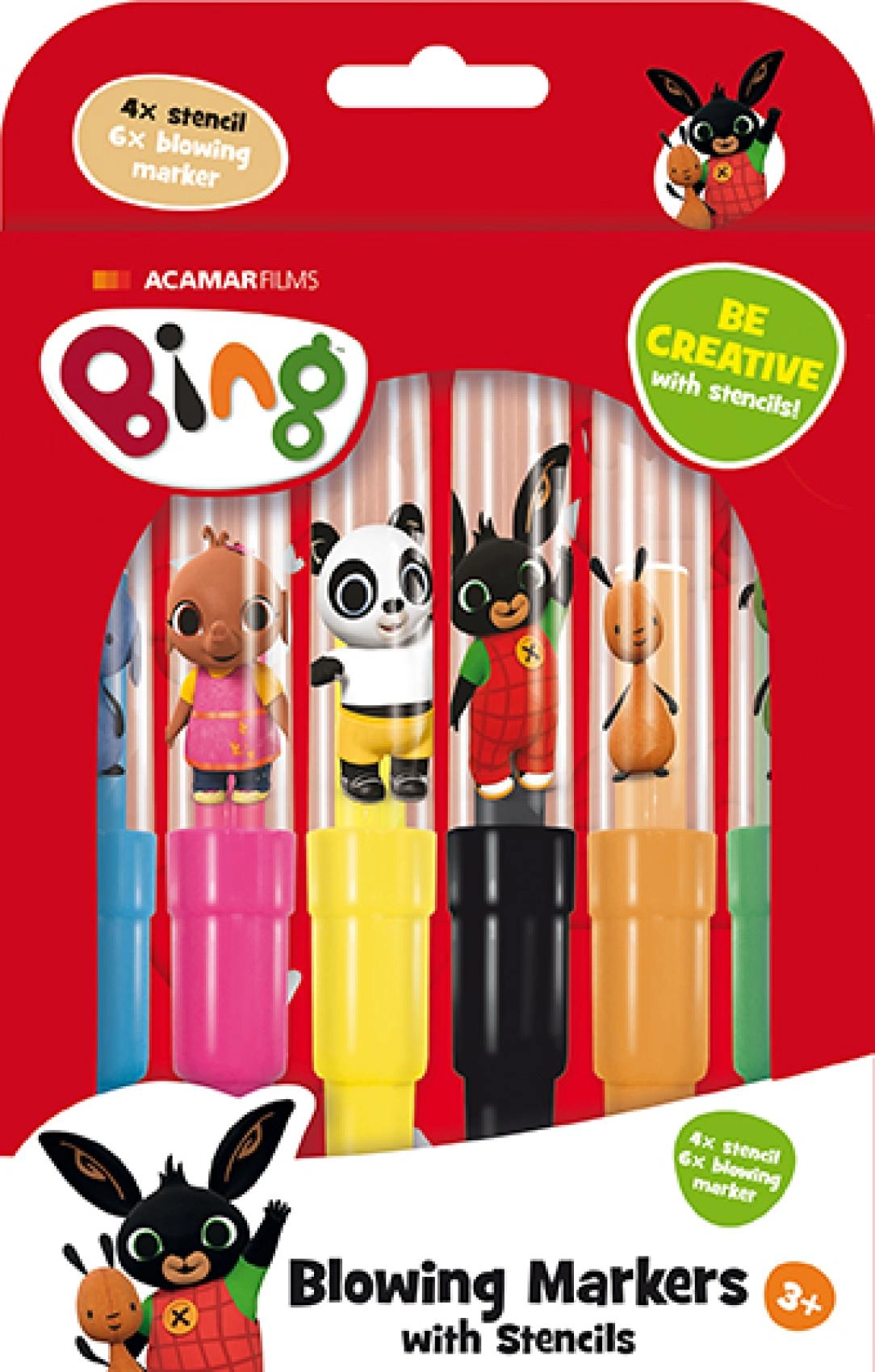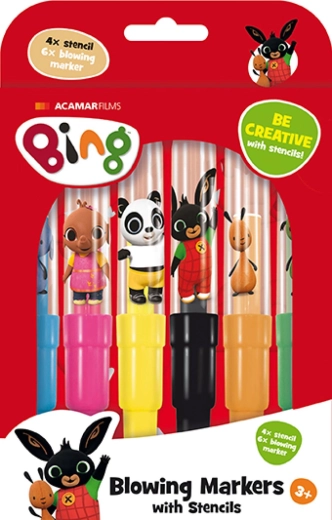 Objevte zábavné tvoření s foukacími fixy a šablonami s motivy KRÁLÍČEK BING. Sada obsahuje 6 barevných foukacích fixů a 4 papírové šablony, se kterými děti snadno vytvoří efektní sprejové obrázky. Ideální pro rozvoj kreativity, jemné motoriky a fantazie.