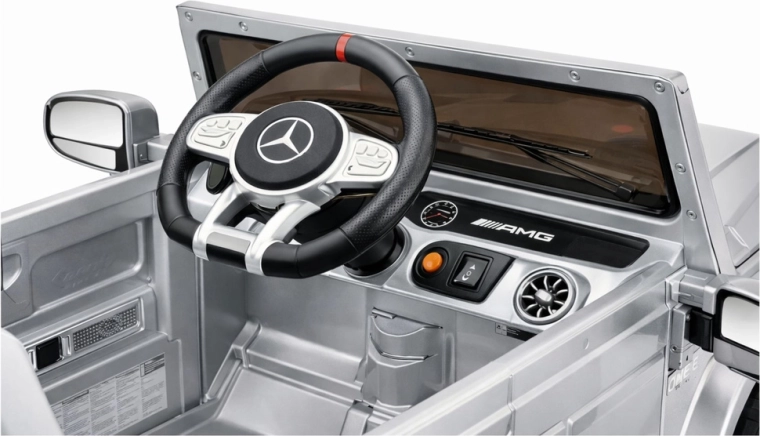 Detailní přední maska, světlomety, zrcátka a emblémy AMG přinášejí dětem skutečný zážitek z jízdy v ikonickém off-roadu.