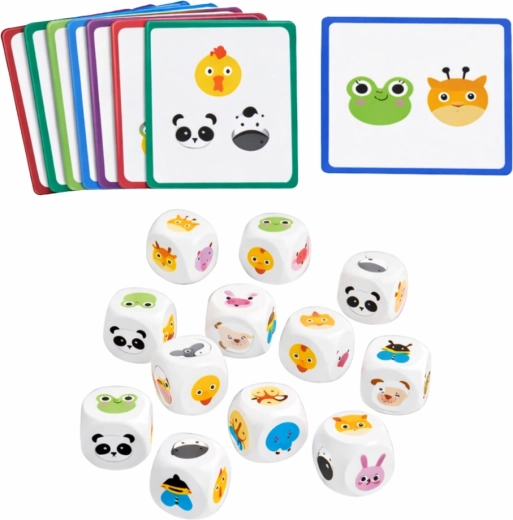 Součástí jsou barevně potištěné dřevěné kostky se zvířaty a karty se vzory, podle kterých děti skládají správné kombinace. Hra je ideální pro samostatné objevování i pro zábavnou soutěž, kdo rychleji a přesněji poskládá motiv.