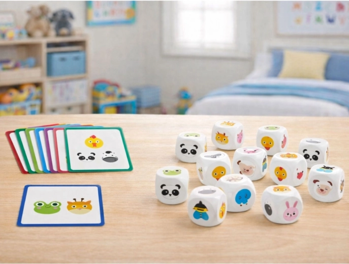 Tato edukativní logická hra učí děti pozorovat, porovnávat a řešit úkoly formou hry. Dítě si vytáhne kartu s ilustrací a otáčením kostek skládá shodný obrázek. Při hraní se posiluje koncentrace, trpělivost i jemná motorika.