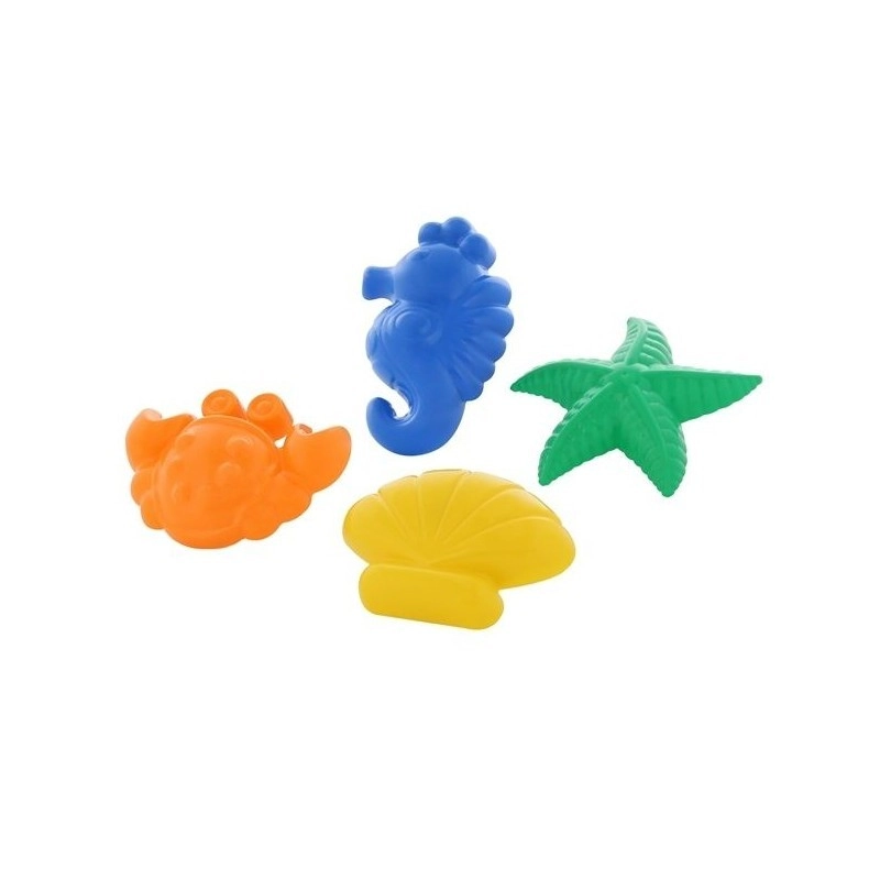Zábavná sada 4 plastových formiček na písek ve tvarech kraba, hvězdice, mušle a mořského koníka promění každé pískoviště či pláž v kreativní dílnu. Děti si snadno vytvářejí krásné otisky, rozvíjejí jemnou motoriku, fantazii a užijí si spoustu venkovní zábavy.