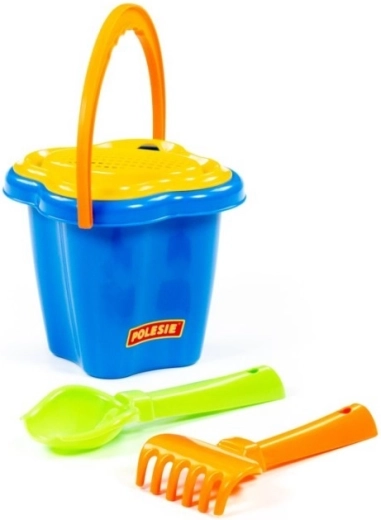 Tato univerzální sada na písek potěší děti pestrými barvami a chytrým tvarem kyblíku připomínajícím květinu. Díky kombinaci lopatky, hrábí a sítka si děti snadno postaví bábovičky, hradby i propracované detaily, a přitom si rozvíjejí představivost a zručnost.