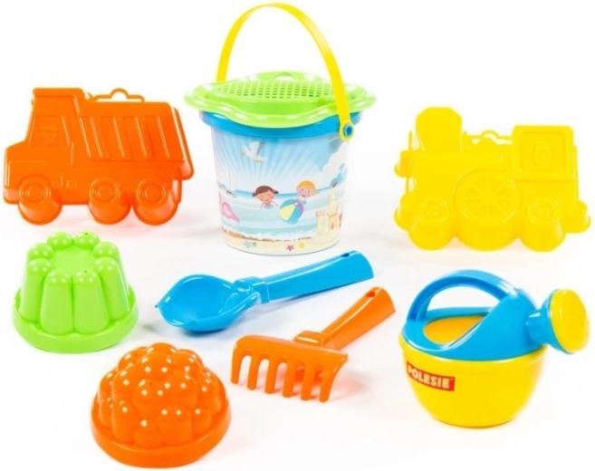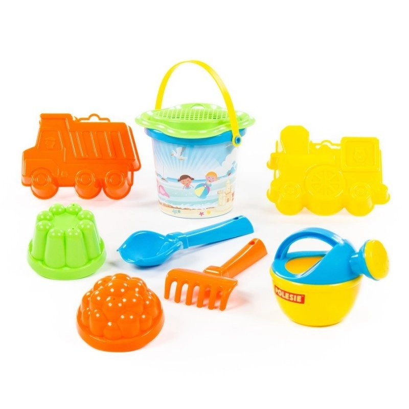 Praktická sada na písek s malým kyblíkem a sítkem ve tvaru květu obsahuje lopatku, hrabičky, konvičku a 4 formičky (např. autíčko a mašinka). Skvělá na pískoviště i pláž, podporuje fantazii a rozvoj jemné motoriky. Dodáváno v různých barevných variantách náhodně podle dostupnosti. Cena je za jednu sadu.