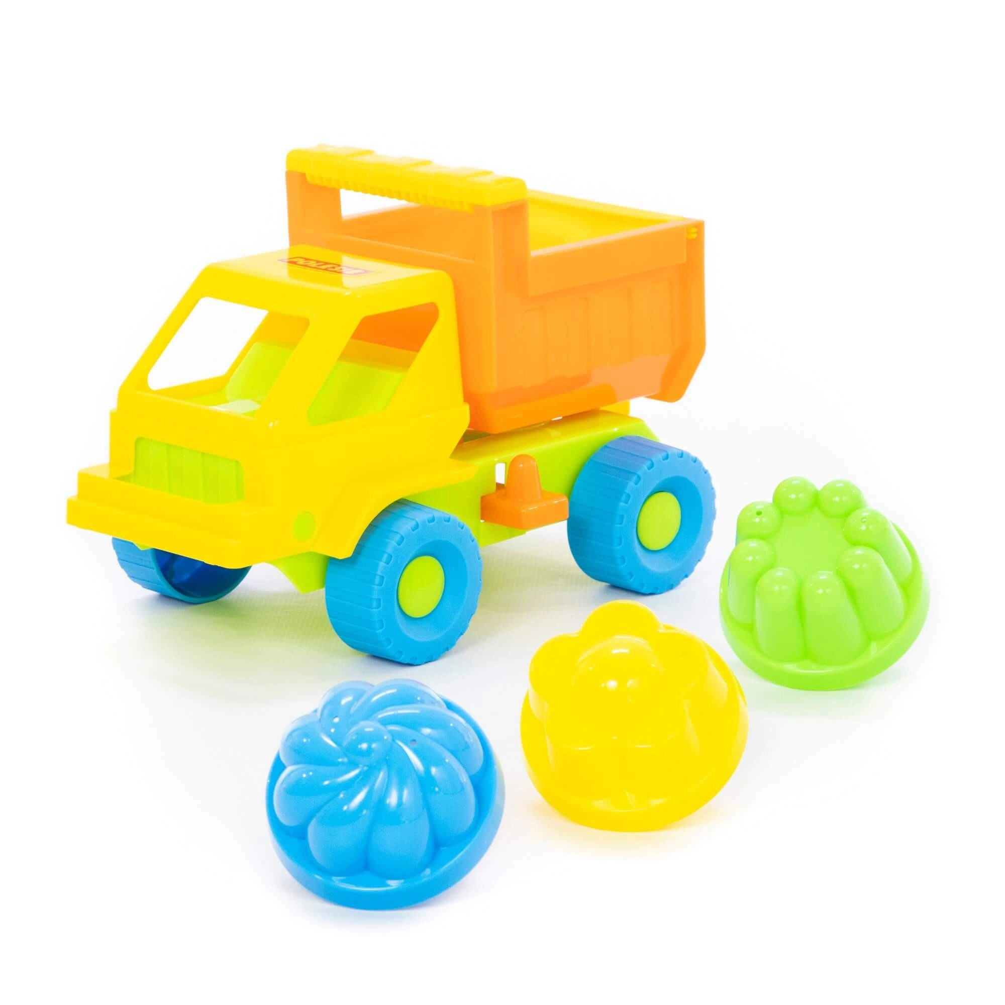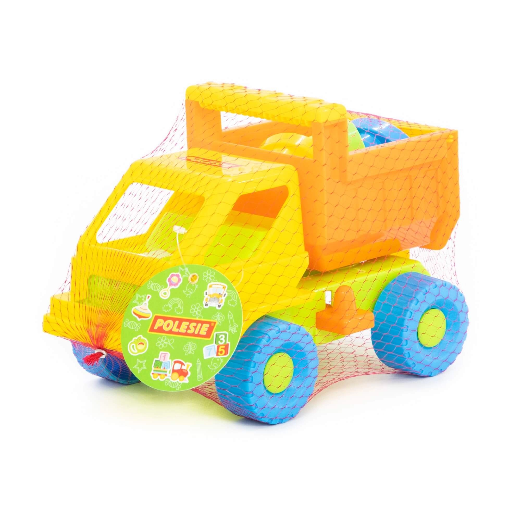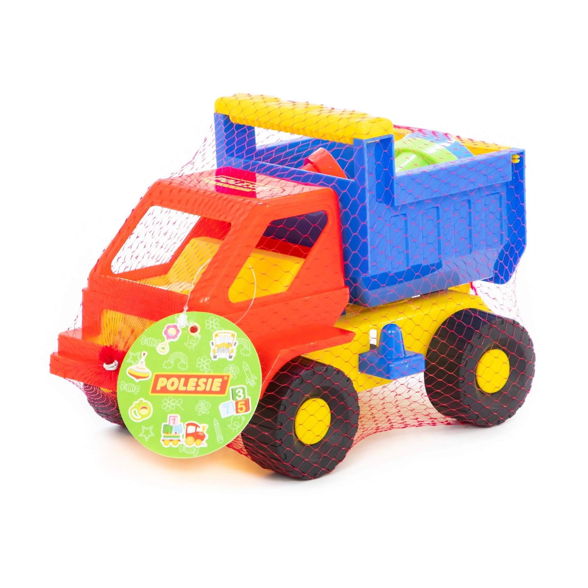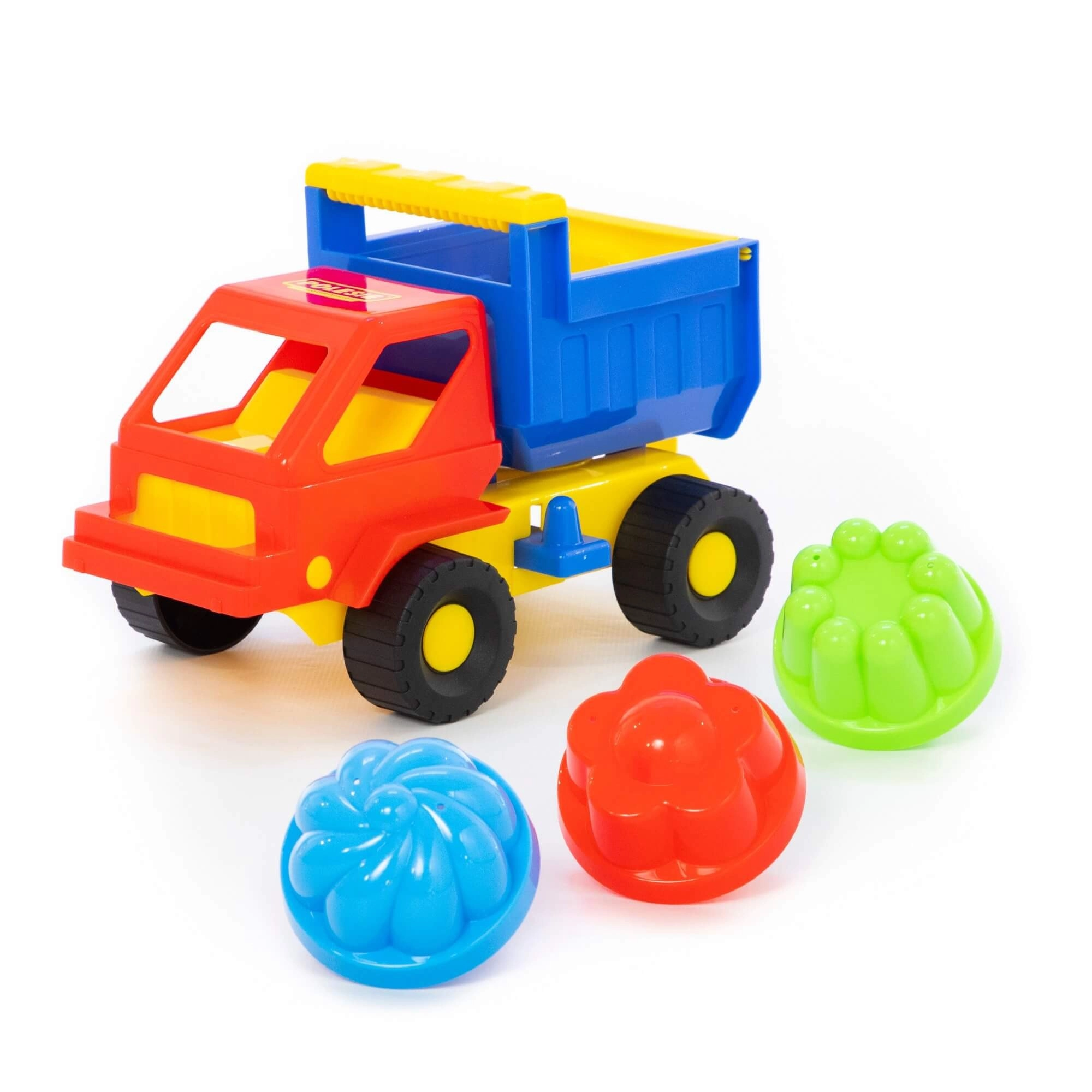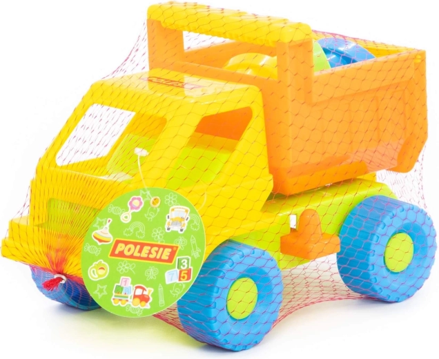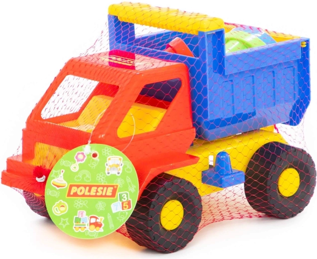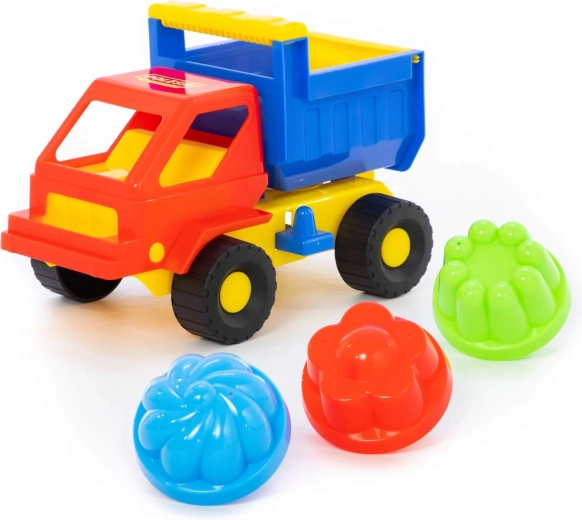 Barevný náklaďák snadno převáží písek a díky vyklápěcí korbě umožní rychlé vysypání nákladu. Skvělé pro realistickou hru na staveniště.