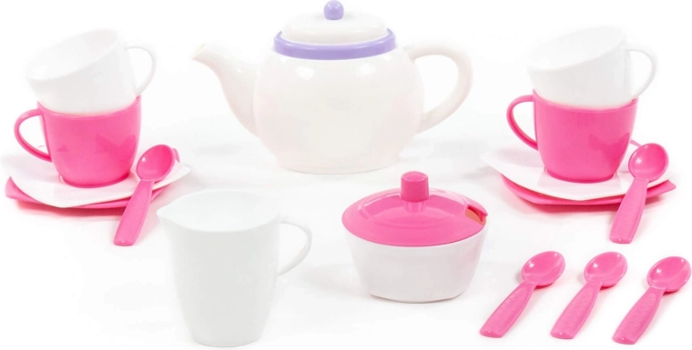 Dětská čajová sada ALICE potěší malé hostitelky i hostitele. Obsahuje 18 dílů pro 4 osoby v lehkém a odolném provedení z plastu – šálky, podšálky, lžičky, cukřenku i konvičku. Skvělá pro hru na čajový dýchánek, rozvíjí fantazii, kreativitu a sociální dovednosti při společné hře.