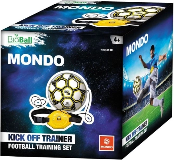 Kick Off Trainer je praktická pomůcka pro individuální fotbalový trénink. Míč o průměru cca 23 cm je připevněn na pružnou šňůru s délkou přibližně 110 cm a k opasku s přezkou, díky čemuž se po každém kopnutí vrací zpět k hráči. Trénujte techniku, přesnost i práci s míčem bez nutnosti spoluhráče.