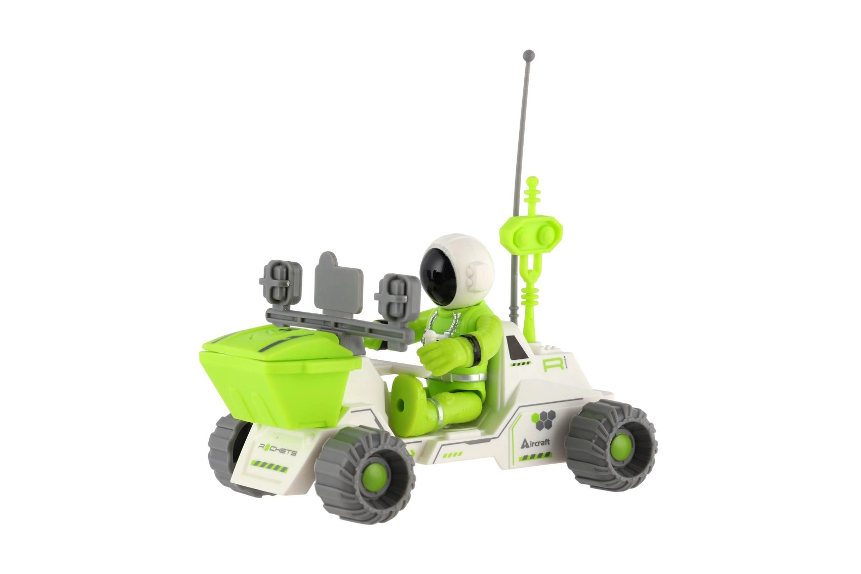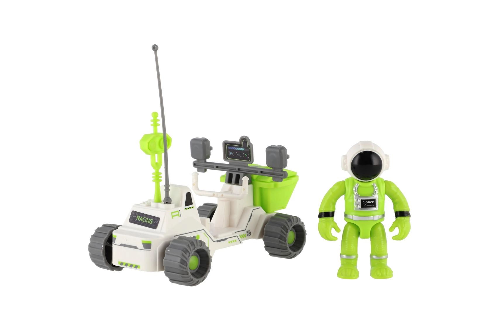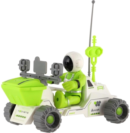 Tento vesmírný rover je ideální hračkou pro malé objevitele. Kombinuje moderní vzhled s funkčními prvky, jako jsou velká terénní kola, přední úložný koš a výrazné antény pro „komunikaci“ na mimozemských planetách. Přiložená figurka astronauta zapadne do kokpitu a připraví se na průzkum neznámého terénu.