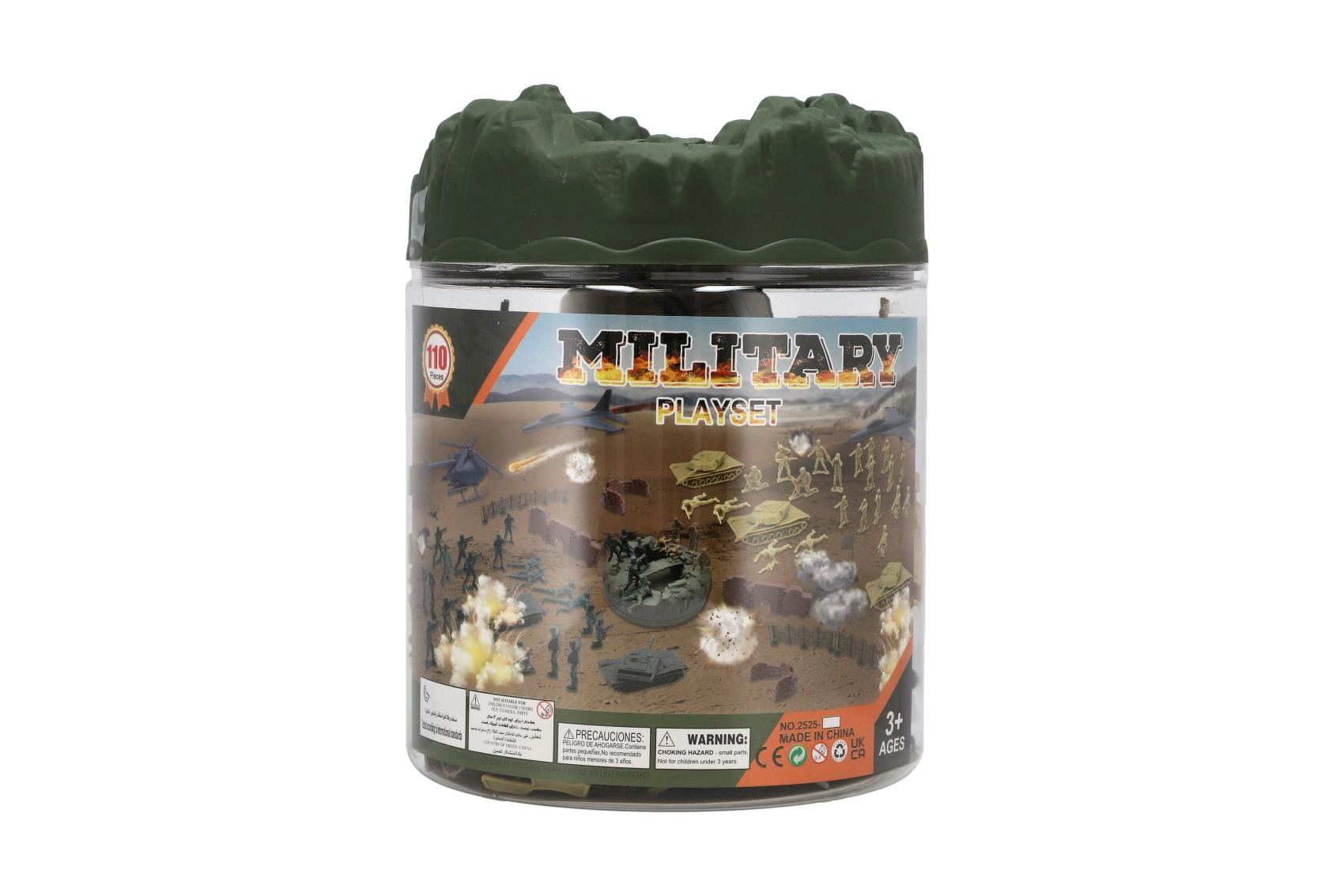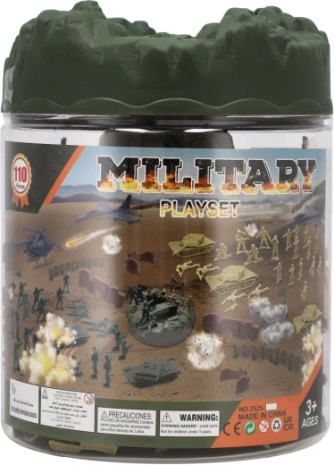Velká vojenská sada pro malé dobrodruhy přináší 110 dílků pro akční hru – vojáčky, vozidla, letadla i doplňky pro vytvoření vlastního bojiště. Vše je uloženo v praktické plastové dóze pro snadné ukládání a přenášení. Skvělé pro rozvoj fantazie, strategického myšlení a kreativní hru.