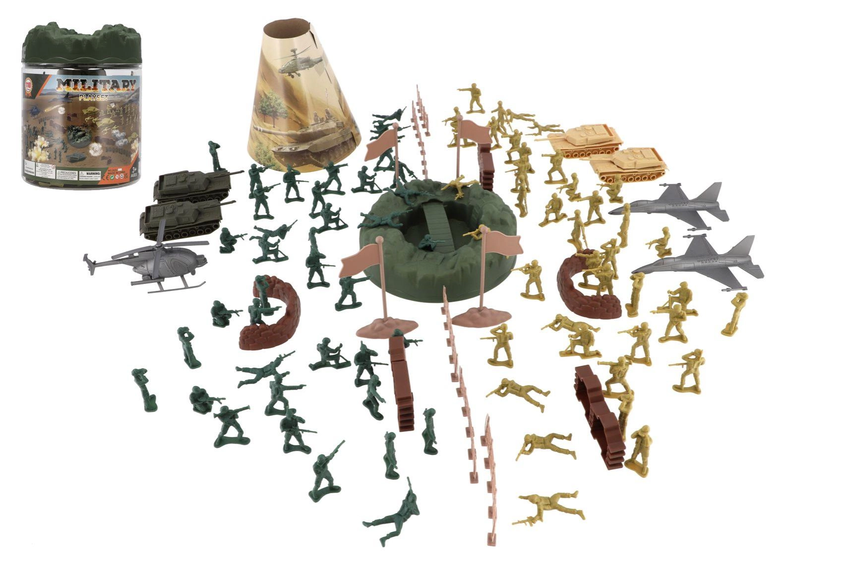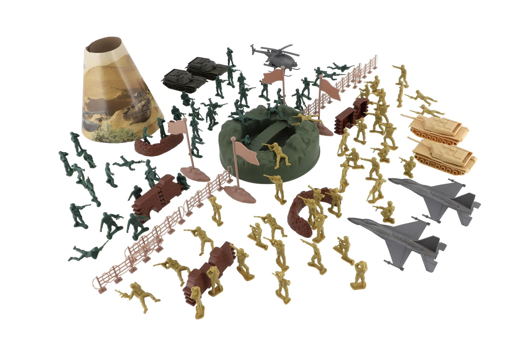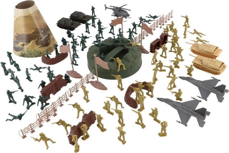Rozsáhlá vojenská sada nabízí vše, co děti potřebují k vytváření napínavých bitevních scén. Najdou v ní plastové vojáčky ve více pózách, tanky, letadla a helikoptéry, stejně jako ploty, barikády, vlajky a terénní díl. Díky bohaté výbavě lze snadno stavět základny, plánovat postup a rozvíjet strategii.